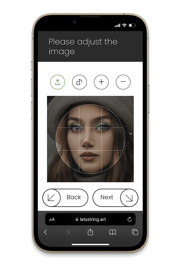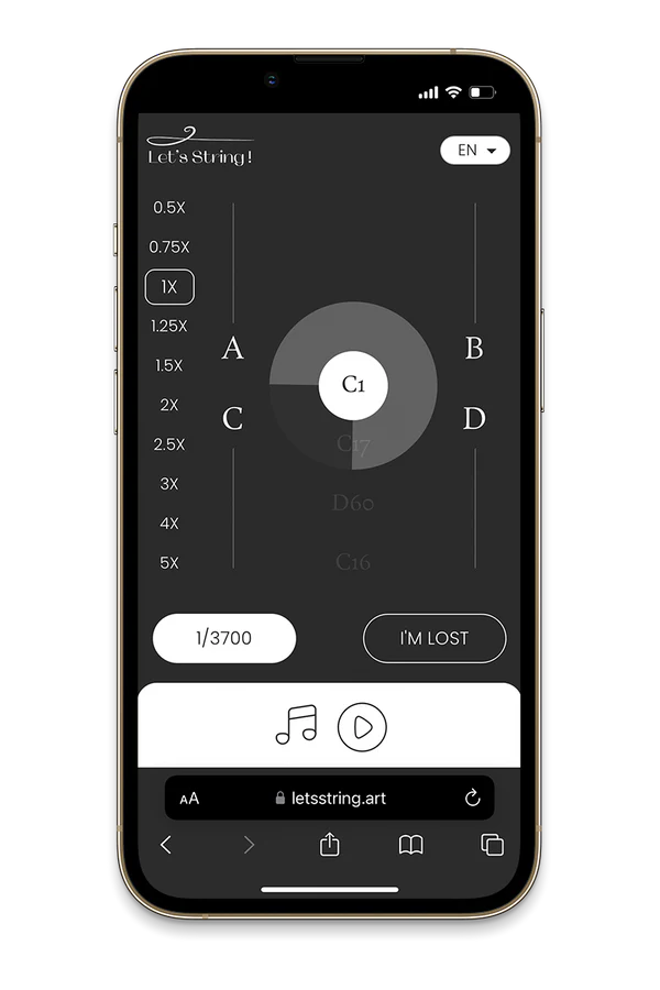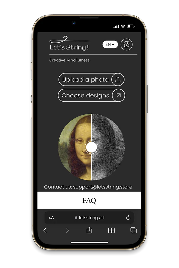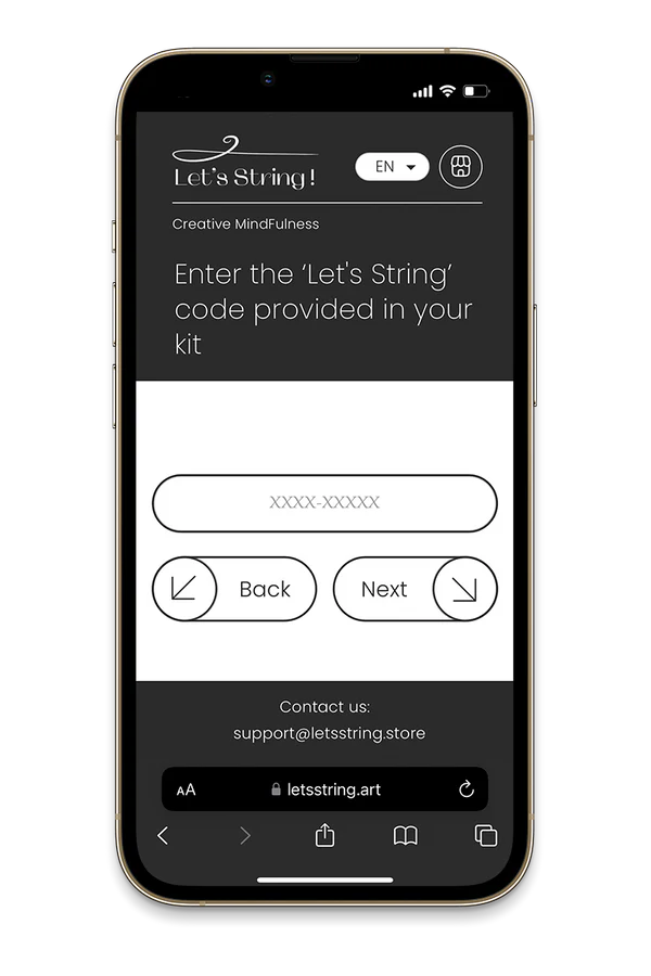 1. Vaya a LetsString.art o escanee el código QR de la tarjeta de código exclusivo de Let's String