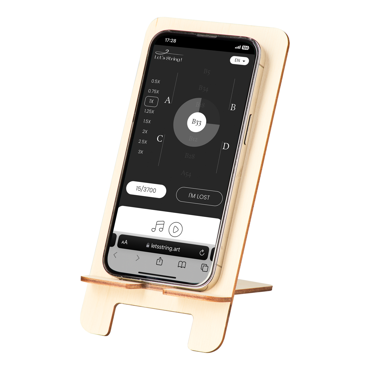1. Vaya a LetsString.art o escanee el código QR de la tarjeta de código exclusivo de Let's String